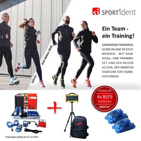 Beim Kauf eines SPORTident Schul- und Trainings Set (CHF 2560.00) und der brandneuen eClock von Emit (CHF 500.00) erhälst du gratis 4 neue BSF9 Stationen. Die Aktion ist gültig für alle Bestellungen, die bis am 31. Dezember 2025 per E-Mail eintreffen (andre_schnyder@hotmail.com). Achtung, das Trainingsset ist in 2 Ausführungen erhältlich: vvvvvvvvvvvv Variante A mit 30 SI-Card8 (CHF 2560.00) vvvvvvvvvvvvvvvvvvvvvvvvvv Variante B mit 30 SI-Card9 (CHF 2760.00) Bei der Bestellung bitte angeben ob Variante A oder B gewünscht wird.